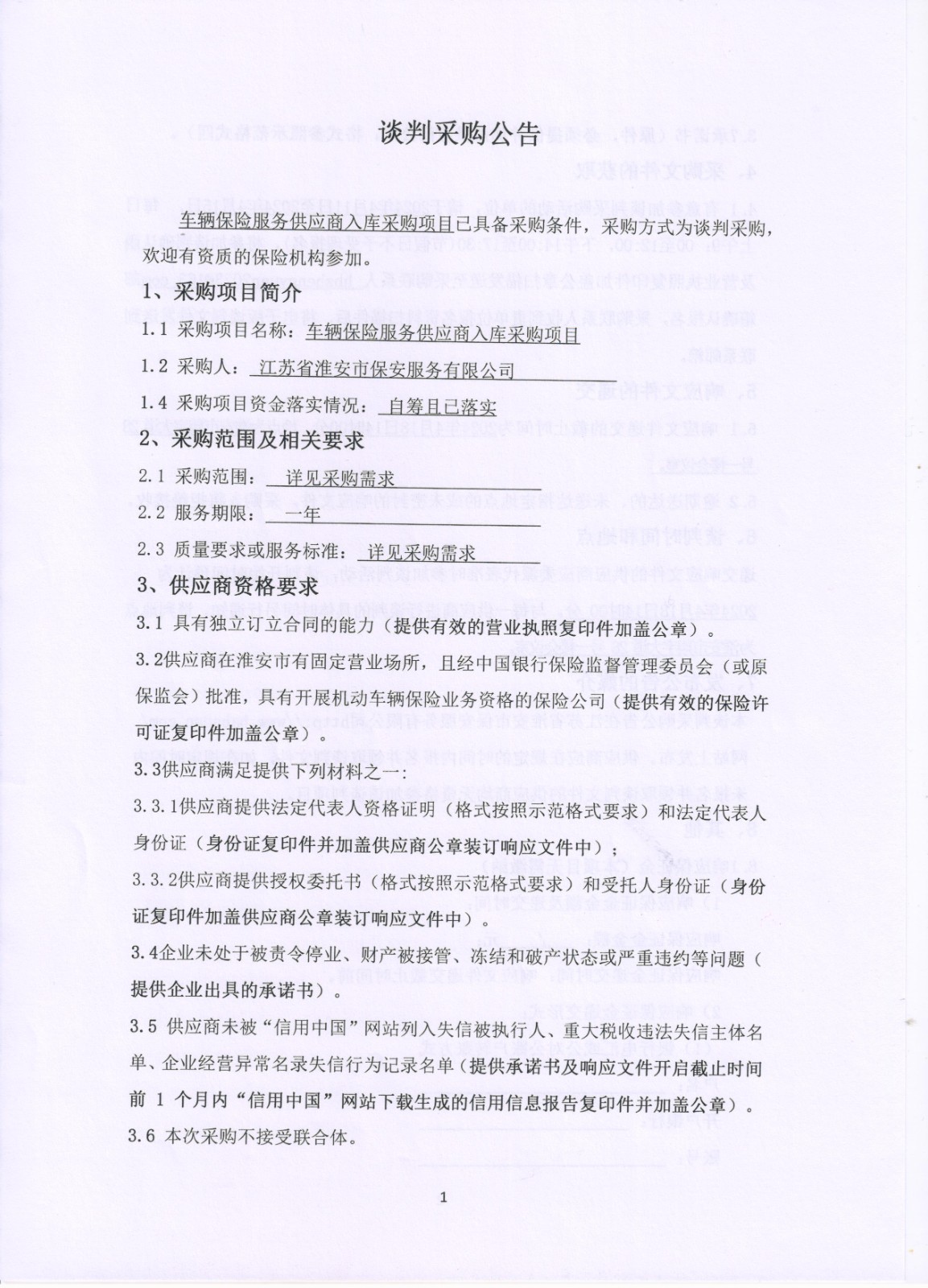 車輛保險(xiǎn)服務(wù)供應(yīng)商入庫項(xiàng)目談判采購公告