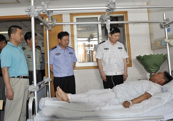 7月30日上午,市公安局徐乾副局長在交巡警支隊蘇必偉支隊長和公司婁伯翱總經(jīng)理等領導的陪同下,到八二醫(yī)院看望慰問了因公負傷的我公司保安四大隊交通協(xié)管員孫長如,并送上了慰問金。(有關事跡本網(wǎng)將繼續(xù)關注并發(fā)布)