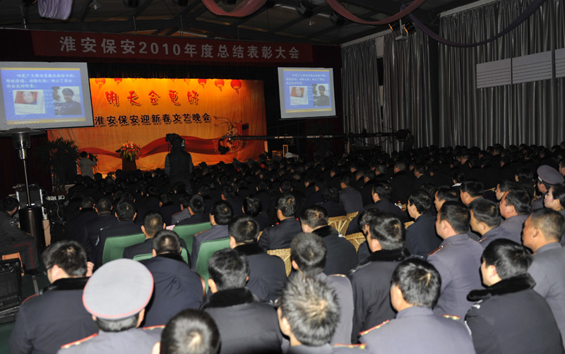 2月26日晚,一年一度的淮安保安總結(jié)表彰大會在總公司活動中心隆重舉行,公司保安隊伍、押運(yùn)隊伍和各分公司員工代表800余人參加了會議。
