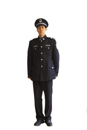 2007式保安員服裝和過去的服裝相比有8處不同,其中包括顏色、帽徽、領口、領章、肩章、臂章、標志和編號。2007式保安服裝上可以看到每個保安員的編號,領口是設計時考慮最為周全的地方,考慮到社區(qū)保安員都是4050人員,所以他們這次的服裝并沒有采用西裝翻領,而是采用適合這個年齡段的中山裝領口。
