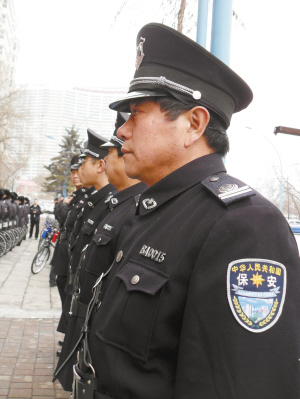 據(jù)朝陽分局副局長陳洪濤介紹說,這次朝陽區(qū)的780名社區(qū)保安員統(tǒng)一更換新制服為我省首例。此次換裝,區(qū)政府、朝陽分局和保安員共同出資,為社區(qū)保安員更換服裝共花去40余萬元。