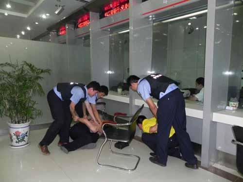 為進一步做好押運工作,6月30日,德州市在市區(qū)某工商銀行現(xiàn)場開展反搶劫模擬演練。按照方案部署,兩名押運隊員扮演的犯罪分子來到業(yè)務(wù)窗口說要取10萬現(xiàn)金,隨后拿出事先準備好的仿真***和炸藥包逼工作人員把錢交出來,隨后三名押運隊員上前把“犯罪分子”捉拿歸案。此時現(xiàn)場響起熱烈的掌聲,演練圓滿結(jié)束。