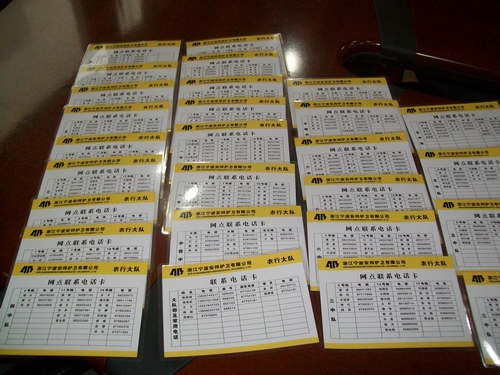為提高大隊押運服務(wù)質(zhì)量,增強一線押運車組與網(wǎng)點服務(wù)單位的直接協(xié)調(diào)溝通,減少應(yīng)聯(lián)系不夠造成的各類誤會,寧波安邦護(hù)衛(wèi)有限公司農(nóng)行大隊根據(jù)各中隊線路網(wǎng)點編排情況,特定制了一批服務(wù)網(wǎng)點固定電話聯(lián)系卡,并配發(fā)到各中隊車組上,方便使用。通過近一個月的試用,效果較好,提高了業(yè)務(wù)工作聯(lián)系的時效和準(zhǔn)確性,避免了因業(yè)務(wù)聯(lián)系不到位造成的投訴現(xiàn)象,各方反應(yīng)良好。
