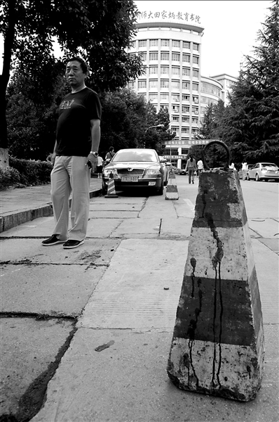 ▲7月2日,貴州師范大學(xué)事發(fā)現(xiàn)場仍有血跡。