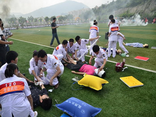 9月1日是泉州市解放63周年紀念日,泉州市人防辦每年都在這一天舉行一次防空警報試鳴暨人員疏散演練活動,主會場在各縣市輪流舉辦,各縣市設(shè)立分會場,今年的主會場設(shè)在南安市實驗中學(xué)。上午9點,泉州市人防辦、南安市人防辦在南安市實驗中學(xué)舉辦的泉州南安市防空警報試鳴暨人員疏散演練活動準(zhǔn)時啟動,多種防空警報聯(lián)合試鳴,防化專業(yè)隊、消防專業(yè)隊、預(yù)備役營、治安巡邏專業(yè)隊、電力搶修專業(yè)隊、自來水搶修專業(yè)隊、醫(yī)療救護專業(yè)隊等多種人防專業(yè)隊參與救援演練。為確保演練取得成功,該市保安協(xié)警和校園專職保安及師生等700多人參與疏散演練。