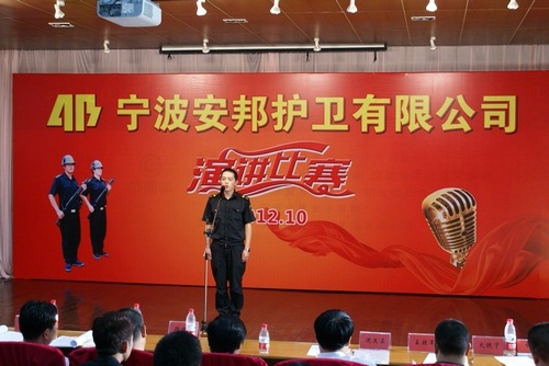 為有效檢驗(yàn)公司安邦文化主題教育活動成果,豐富員工業(yè)余文化生活,不斷提高守押隊(duì)伍凝聚力,根據(jù)《安邦文化主題教育活動實(shí)施方案》安排, 10月16日下午,寧波安邦護(hù)衛(wèi)有限公司在甬江職高多功能廳舉行演講比賽,并邀請市公安局經(jīng)文保支隊(duì)政委顧致中、治安支隊(duì)副支隊(duì)長林天海,市工商銀行、農(nóng)業(yè)銀行、中國銀行、建設(shè)銀行、寧波銀行等5家大行保衛(wèi)部領(lǐng)導(dǎo)和甬江職高“安邦班”班主任擔(dān)任嘉賓評委。公司總經(jīng)理張正逸及各部門、各大隊(duì)負(fù)責(zé)人,隊(duì)列會操比賽參賽隊(duì)員,甬江職高高二“安邦班”全體學(xué)生共200余人觀看了比賽。