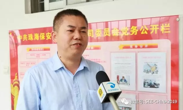 珠海保安集團培訓中心主管楊哲接受記者采訪