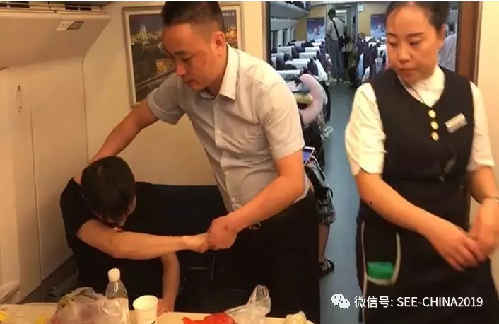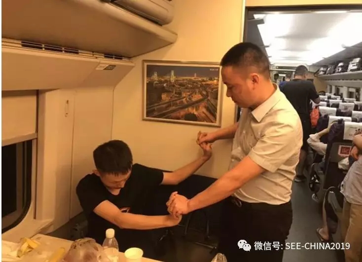 昨晚從福州南站開往溫州南站的動(dòng)車D3212組列車上正在緊急廣播一位病人突發(fā)心臟病抽筋,臉色蒼白心悶疼痛,動(dòng)車組乘務(wù)員廣播了3次尋救醫(yī)務(wù)乘客或其他乘客參與臨時(shí)急救,時(shí)間過去了十多分鐘,仍無一人相助,就在這個(gè)心急如焚的時(shí)刻,一位臨危不懼“見義勇為”的好人挺身而出,在短短的幾分鐘穴位按摩活動(dòng),患者已奇跡般的反過神來,如果沒有及時(shí)處理很有可能會(huì)導(dǎo)致心臟驟停的嚴(yán)重后果。當(dāng)列車長(zhǎng)、患者夫婦及車廂內(nèi)所有人看到這有驚無險(xiǎn)的感人一幕都高興不已,大家紛紛拍手稱道。列車長(zhǎng)為這位好心人點(diǎn)贊并問道:“如此神奇!您是什么職業(yè)的?謝謝您及時(shí)出手相救。”他終于露出了專注緊張搶救后的笑容說:“救死扶傷、保家衛(wèi)國是我的神圣職責(zé),我是軍人退伍到溫州做保安......”這種退伍不褪色“見義勇為”的精神事跡樹立了正能量,只要人人都獻(xiàn)出一點(diǎn)愛,世界將變成美好的人間。
