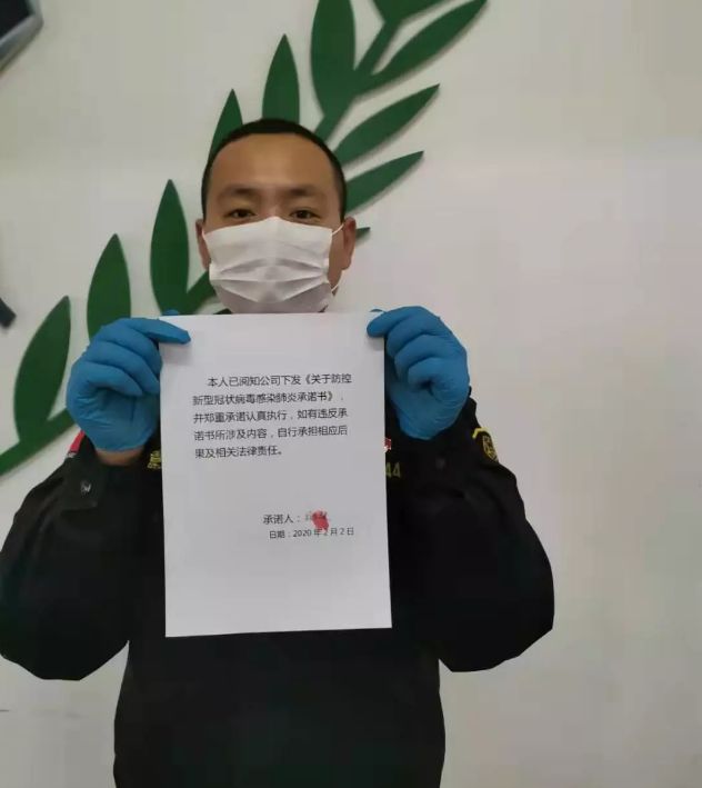 (三)普及新型冠狀病毒肺炎的防控知識(shí),提高全體員工的防控意識(shí)。嚴(yán)禁走街串巷、走親訪友、親友聚會(huì),通過公眾號(hào)、微信群等宣傳途徑,大力宣傳、普及預(yù)防新型冠狀病毒肺炎的相關(guān)知識(shí),提高全體員工的公共衛(wèi)生意識(shí)和防治突發(fā)事件的能力,公司全體員工簽訂防疫承諾書。
