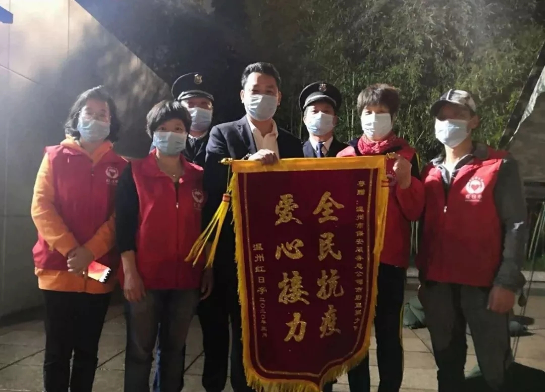 雖然捐款金額不高,但都包含著溫州保總隊(duì)員們的心意。3月28日,紅日亭為溫州??偟膼坌木栀涃浰湾\旗,錦旗上寫著“全民抗疫、愛心接力”。隊(duì)員們表示這是應(yīng)該做的,在災(zāi)難面前,眾志成城,守望相助,我們必將共渡難關(guān)。