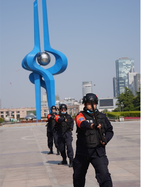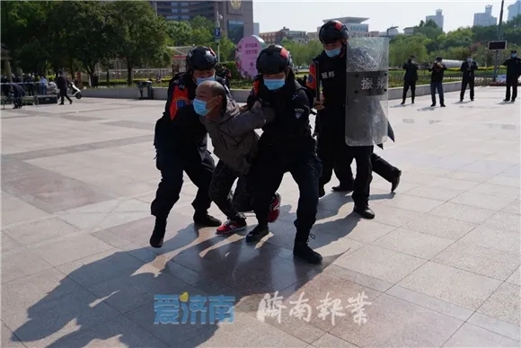 颯爽英姿的安保人員全副武裝,整齊劃一的隊(duì)伍斗志昂揚(yáng),4月28日下午,一場(chǎng)立足“疫情防控與節(jié)日安全”的綜合安保演練在泉城廣場(chǎng)舉行。