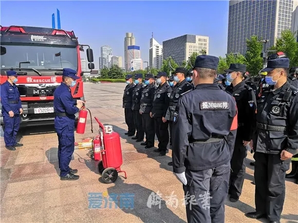 演練現(xiàn)場(chǎng),由泉城廣場(chǎng)管理服務(wù)中心與山東振邦保安服務(wù)責(zé)任有限公司組成的安保隊(duì)伍進(jìn)行了“應(yīng)急棍術(shù)展示”、“疑似爆炸物處置流程”、“暴恐事件處置流程”、“火災(zāi)處置流程”和“消防知識(shí)培訓(xùn)”5個(gè)科目演練。