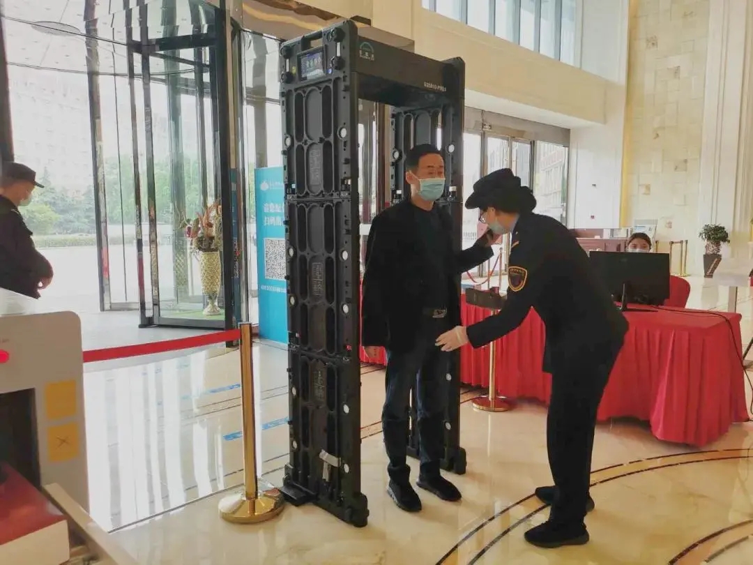 2020合肥市“兩會”安檢安保保障現(xiàn)場因為疫情影響,此次“合肥兩會”的安保安檢保障人員,必須提前申報個人健康狀況,通過核酸檢測,才可參與到保障任務(wù)中。通過審核后,會務(wù)保障人員到達(dá)執(zhí)勤點,隨即進行封閉式管理,禁止外出。據(jù)了解,為了圓滿完成任務(wù),合肥保安集團的執(zhí)勤人員開啟了“24小時連軸轉(zhuǎn)”工作模式。同時,為了落實好疫情防控措施,兩會駐地和會議現(xiàn)場的安檢,都配備了口罩、消毒液等防護物資,每個執(zhí)勤點還配備兩套防護服作為應(yīng)急備用,且全程采取無接觸式安全檢查。統(tǒng)計顯示,本次兩會,合肥保安集團共投入安檢安保人員100人次、X光射線安檢機3臺、金屬探測安檢門5副。截止到5月10日早晨6點,“兩會”第一天共計安檢人數(shù)4756人次,安檢過包2173個,查獲禁限品10件。