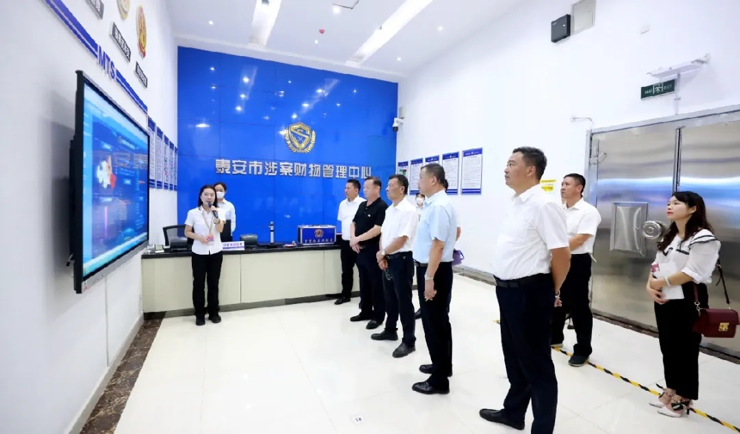 國泰保安羅來明總經(jīng)理參觀了涉案車輛保管區(qū),實地考察了管理中心各類涉案財物保管庫房和處置區(qū)以及5G遠程示證室。觀看了涉案財物一體化管理和智慧管理平臺運行宣傳片。