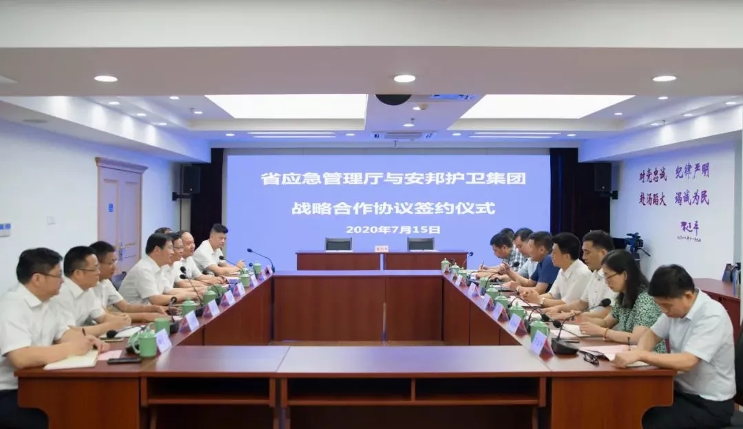 7月15日,浙江省應(yīng)急管理廳和浙江安邦護(hù)衛(wèi)集團(tuán)有限公司在浙江省行政中心舉行戰(zhàn)略合作簽約儀式。浙江省應(yīng)急管理廳黨委書記、廳長凌志峰,省國資委黨委委員、副主任劉盛輝,安邦護(hù)衛(wèi)集團(tuán)黨委書記、董事長吳高峻出席簽約儀式并致辭。