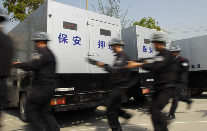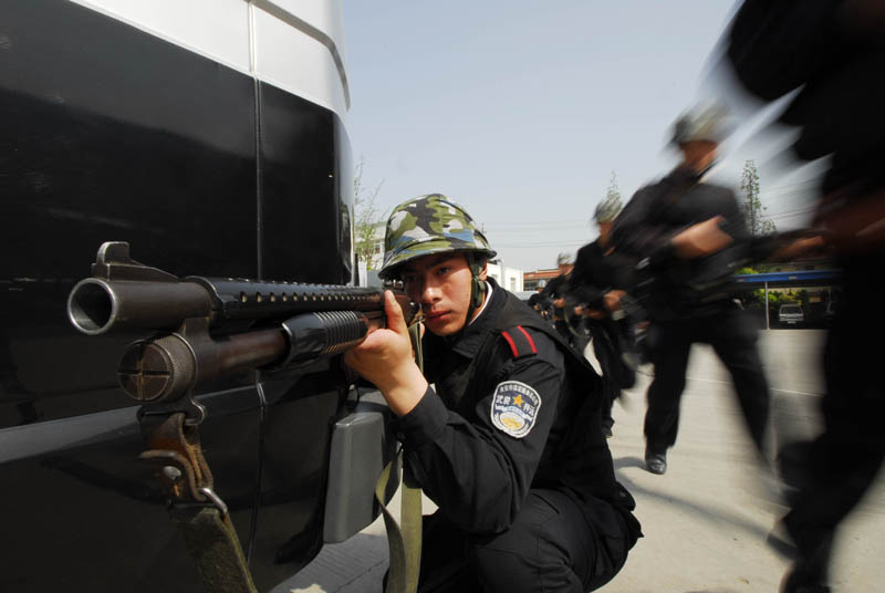 5月3日,武裝押運(yùn)員在進(jìn)行實(shí)戰(zhàn)演練。