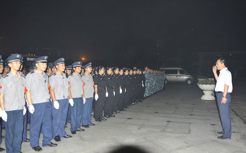 晚會期間,總公司人防中心和押運中心等部門共投入700余名保安人員參加安全保衛(wèi)工作,公司總經(jīng)理婁伯翱、副總經(jīng)理王克、徐文剛等領(lǐng)導(dǎo)赴金湖現(xiàn)場組織指揮安保工作。全體執(zhí)勤隊員全力做好現(xiàn)場秩序維護(hù)和人員安檢以及各類突發(fā)事件應(yīng)急處置準(zhǔn)備等工作,圓滿完成了晚會安全保衛(wèi)工作任務(wù),樹立了淮安保安隊伍良好的形象。