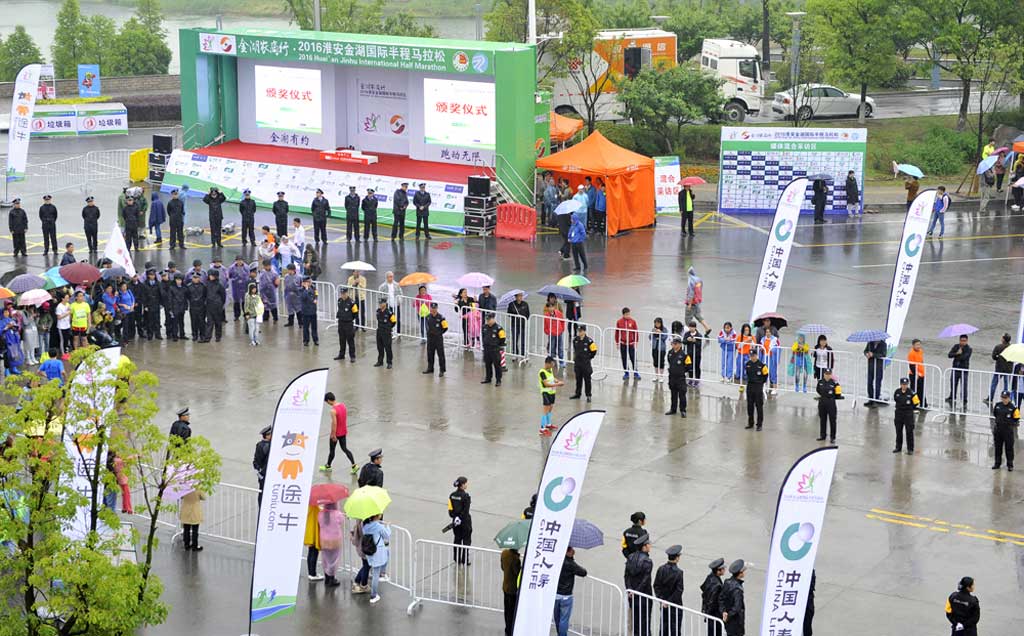 由中國田徑協(xié)會、江蘇省體育局、淮安市人民政府聯(lián)合主辦,金湖縣人民政府、淮安市體育局、江蘇省體育產(chǎn)業(yè)集團(tuán)承辦的“2016淮安金湖國際半程馬拉松”比賽,于2016年5月15日上午8:30分在金湖縣荷花廣場鳴槍開賽,來自世界各地及我國長跑愛好者10000余名運(yùn)動員參加了比賽?;窗彩斜0卜?wù)總公司派出700余名安保人員冒雨執(zhí)勤,提升了保安隊(duì)伍在復(fù)雜天氣條件下的快速反應(yīng)和安保執(zhí)勤的能力。