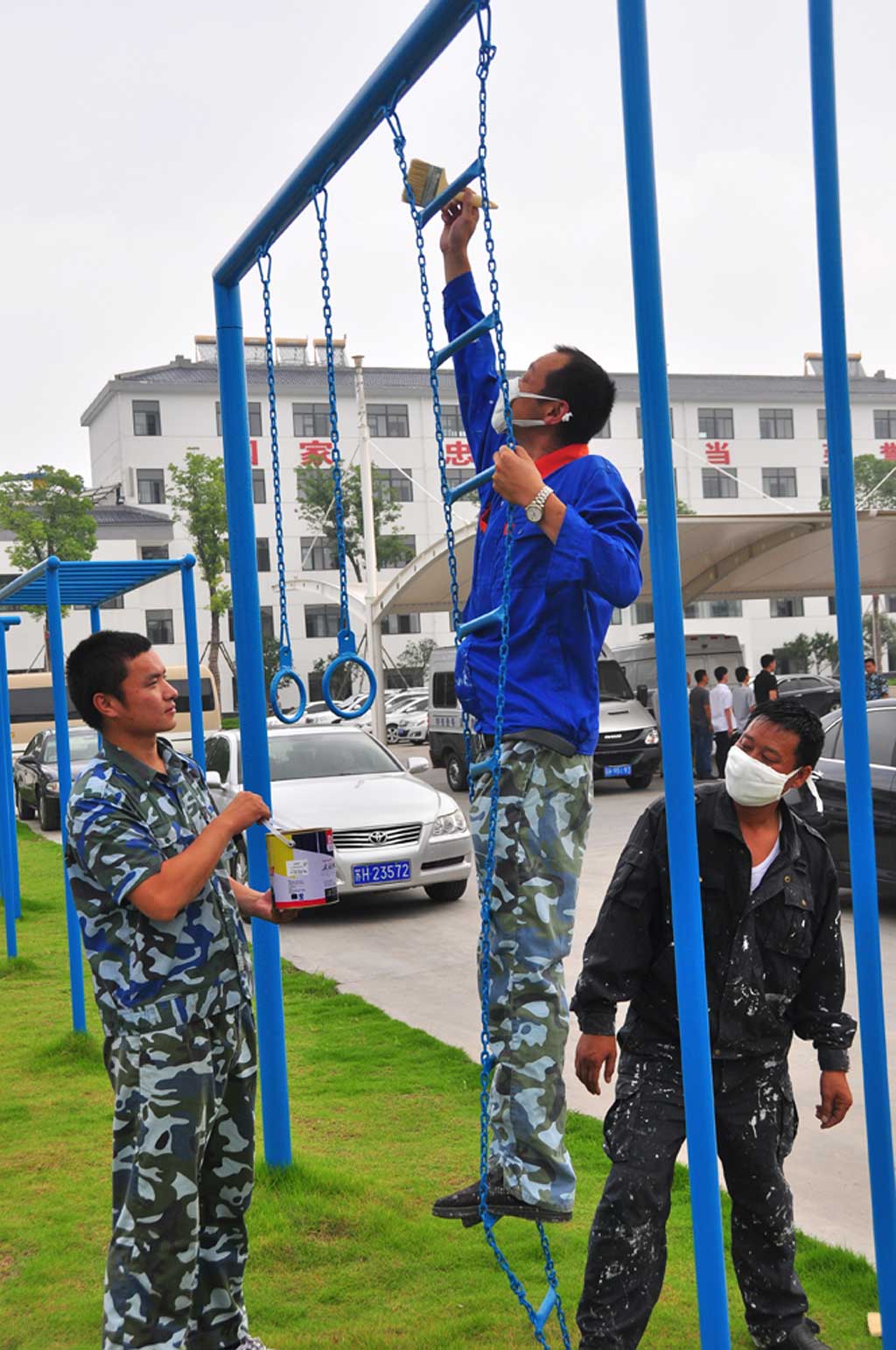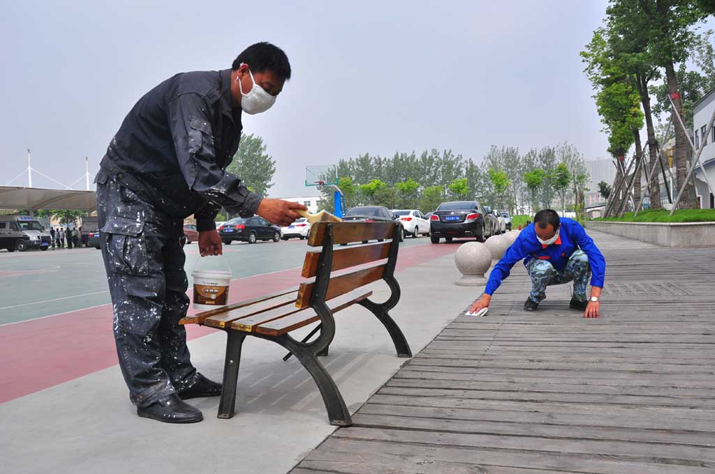 接到任務(wù)后,趙炳華、丁云清2名同志首先對所有施工現(xiàn)場進行了察看和預(yù)算,并制定了施工方案?;谘哼\樓是在老平房的基礎(chǔ)上翻新加層建筑,使得部分房間墻面脫落并出現(xiàn)裂縫,樓體墻面防水層破損,每逢下雨天便有雨水不同程度的滲漏,影響了辦公和生活秩序,加上公司院內(nèi)籃球架、單雙杠器材、木椅、木橋、樓前防護木等褪色和部分損壞的情況,以及剛建好的綜合活動中心二樓1100多平方米木質(zhì)地板需要進行漆化處理。面對如此工程,趙炳華、丁云清2名同志迅速作出合理安排和應(yīng)對措施,開始著手對樓體做好防水處理,同時將1至5層樓的隊員宿舍、辦公室、更衣室等所有房間1000多平方米的墻面進行打磨粉刷,并對公司剛建好的活動中心二樓1100多平方地面進行多次漆化處理,以及房屋里外設(shè)施進行了修繕。