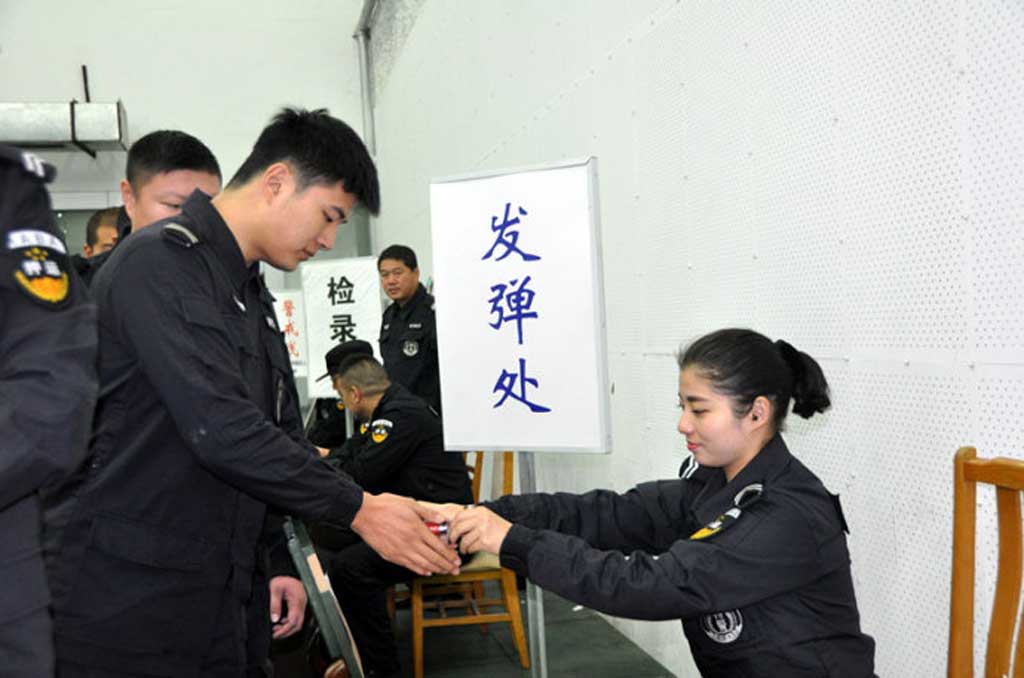 在射擊館內(nèi)筆者看到,每組押運(yùn)操槍手在進(jìn)入射擊區(qū)打靶前,教導(dǎo)員馬如松都會(huì)給部分剛剛加入到武裝押運(yùn)隊(duì)伍不久的同志作心理疏導(dǎo)、調(diào)節(jié)和講解注意事項(xiàng),然后每位持槍手到達(dá)指定射擊位置后,在各自安全員的監(jiān)督下實(shí)施驗(yàn)槍、裝彈、瞄靶、射擊。在打靶期間,押運(yùn)管理中心副主任陳正國擔(dān)任所有押運(yùn)員參加考核的登記、核準(zhǔn)、錄入中靶率并統(tǒng)計(jì)成績,副大隊(duì)長尹兆龍、副教導(dǎo)員周風(fēng)波、劉俊林負(fù)責(zé)后勤保障和現(xiàn)場調(diào)度指揮,副指導(dǎo)員薛峰負(fù)責(zé)槍械故障現(xiàn)場排除等任務(wù)。