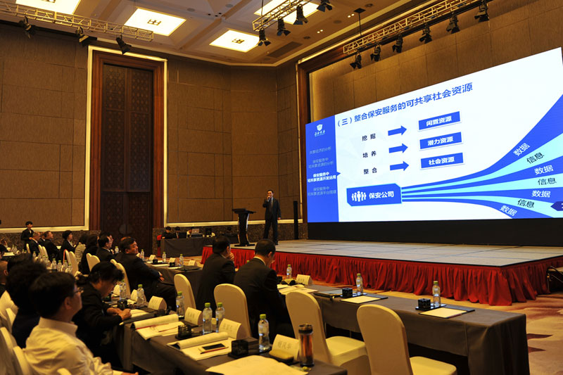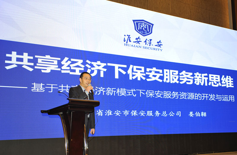 江蘇省淮安市保安服務(wù)總公司總經(jīng)理婁伯翱作《共享經(jīng)濟下保安服務(wù)新思維》主題演講