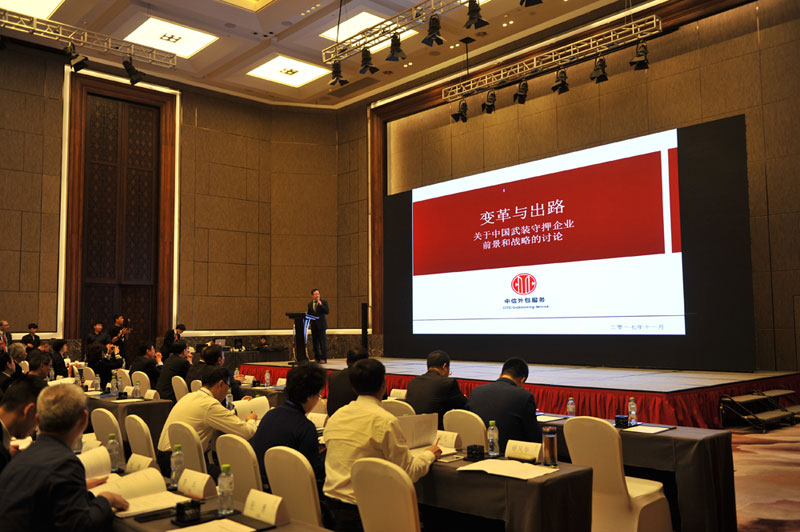 中信外包服務(wù)有限公司總裁沈琛作《中國武裝守押企業(yè)前景和戰(zhàn)略的討論》主題演講