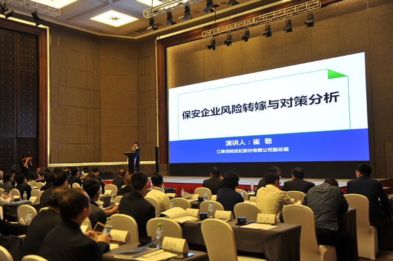 江泰保險經(jīng)紀股份有限公司副總裁崔敬作《保安企業(yè)風險轉(zhuǎn)嫁分析與對策》主題演講