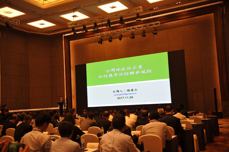臺灣大地集團副董事長楊重正作《臺灣地區(qū)保全業(yè)如何應(yīng)用保險轉(zhuǎn)移風險》主題演講