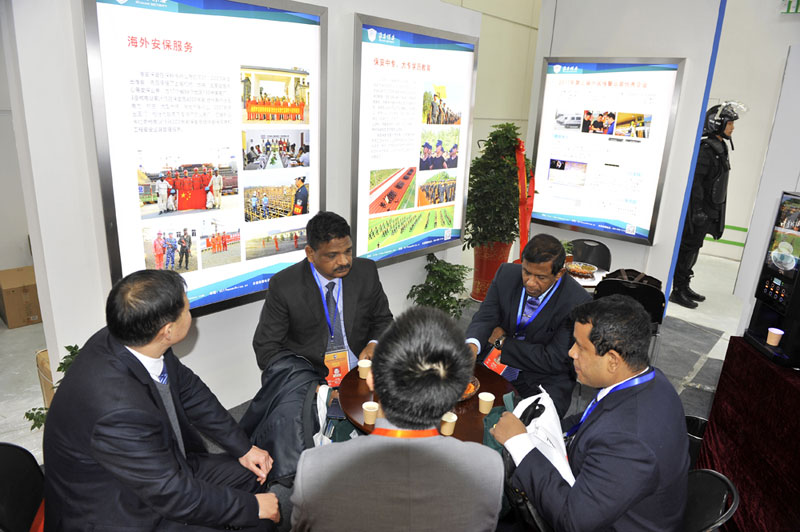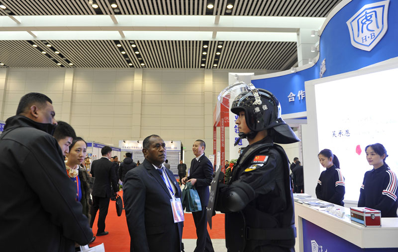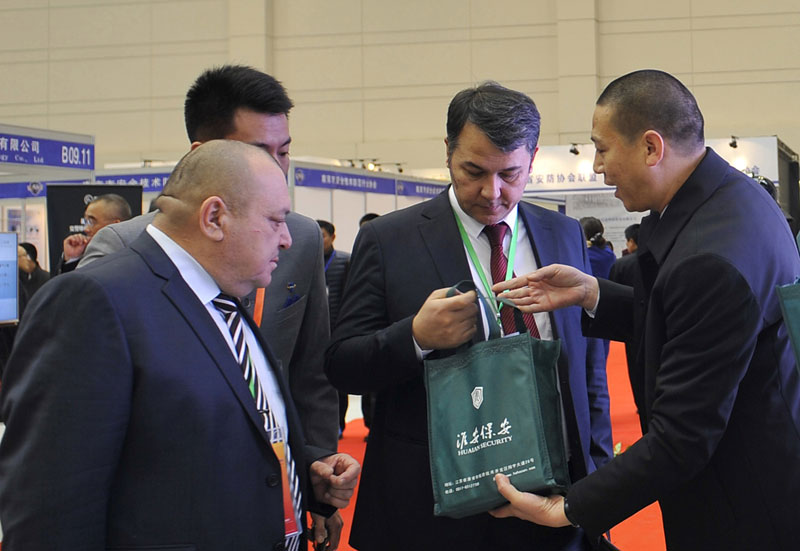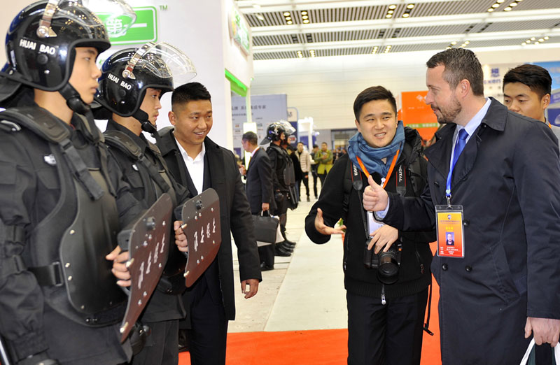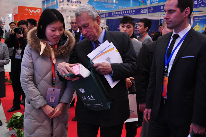 2017年12月11日,第三屆“連云港論壇”警用裝備和公共安全產(chǎn)品博覽會(huì)現(xiàn)場(chǎng),淮安保安展臺(tái)吸引很多中外嘉賓駐足參觀,工作人員向嘉賓一一介紹公司展示的業(yè)務(wù)和項(xiàng)目情況。