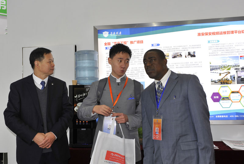 此次參展,淮安保安不僅展示了承建的全國“雪亮工程”推廣項(xiàng)目和自主研發(fā)的布防衛(wèi)士安防產(chǎn)品,同時(shí)將公司開展的海外保安服務(wù)、G20國際峰會(huì)和互聯(lián)網(wǎng)大會(huì)安保、保安中專學(xué)歷教育、聯(lián)網(wǎng)報(bào)警、無人機(jī)服務(wù)等特色業(yè)務(wù)進(jìn)行了全方位的展示,吸引很多中外嘉賓駐足參觀。