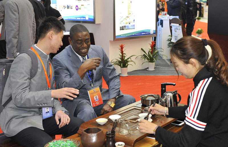 國外嘉賓來公司展臺(tái)了解中國茶文化