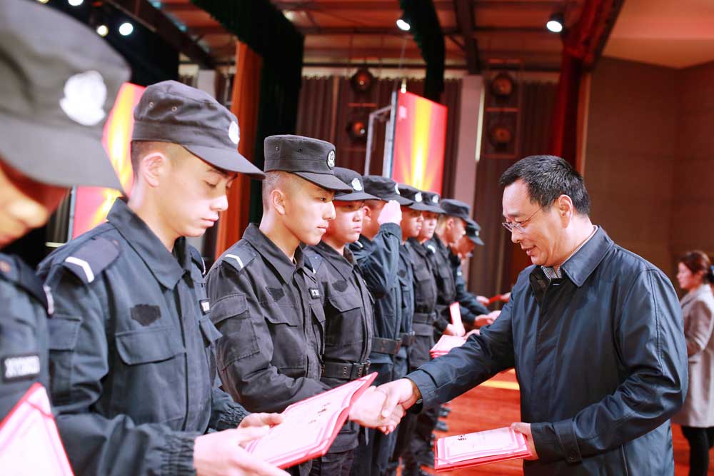4月4日下午,總公司在活動(dòng)中心召開(kāi)了2018年保安班學(xué)習(xí)實(shí)習(xí)交流會(huì)??偣究偨?jīng)理婁伯翱、副總經(jīng)理王克、押運(yùn)中心總監(jiān)侯秀濱、人防中心總監(jiān)王錦春、人力資源中心總監(jiān)陳峻峰等相關(guān)部門(mén)負(fù)責(zé)人和保安班的170名學(xué)生以及家長(zhǎng)參加了會(huì)議。