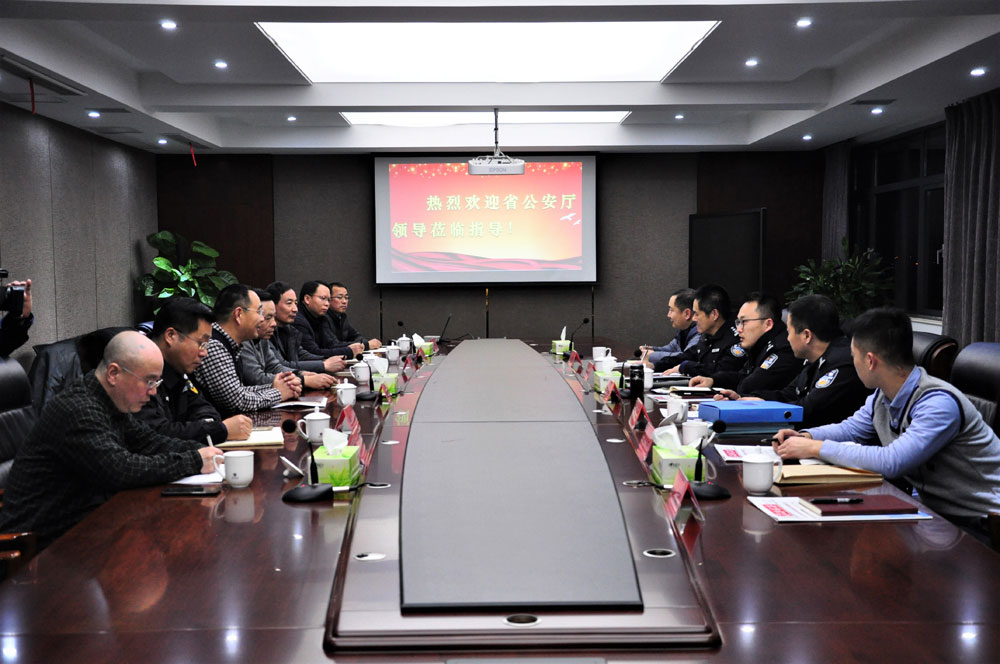 1月21日,江蘇省公安廳治安總隊(duì)保安監(jiān)管科科長王昕、省保安協(xié)會(huì)辦公室李宇航一行蒞臨總公司,調(diào)研江蘇省保安協(xié)會(huì)第三屆理事會(huì)第三次會(huì)員代表大會(huì)會(huì)議精神貫徹落實(shí)情況,淮安市公安局治安支隊(duì)政委顏志龍、監(jiān)管大隊(duì)長呂述山陪同調(diào)研。總公司總經(jīng)理婁伯翱、副總經(jīng)理王克、徐文剛和行政中心、人力資源中心、人防中心、押運(yùn)中心和技防分公司等部門負(fù)責(zé)人參與座談交流。