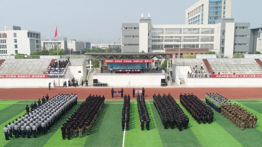 為認(rèn)真做好央視秋晚和新中國成立70周年大慶安保工作,9月8日上午,淮安市保安服務(wù)總公司在淮安市高級(jí)職業(yè)技術(shù)學(xué)校體育場(chǎng)隆重舉行“護(hù)航秋晚、忠誠保大慶”誓師大會(huì)暨匯報(bào)演練,淮安市公安局治安支隊(duì)政委顏志龍、保安監(jiān)管大隊(duì)、市高職校等領(lǐng)導(dǎo)觀摩了科目演練,總公司領(lǐng)導(dǎo)班子和各部門負(fù)責(zé)人以及員工代表共800余人參加了大會(huì)。