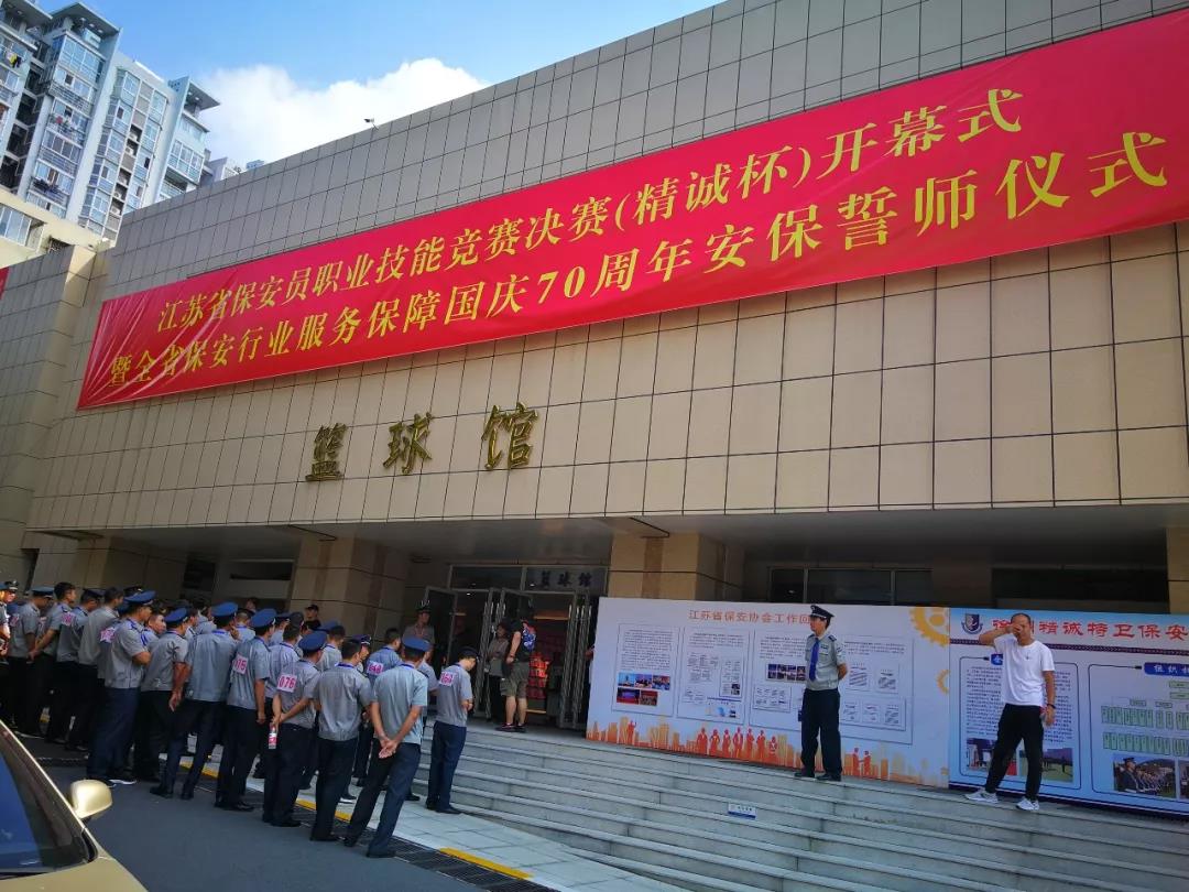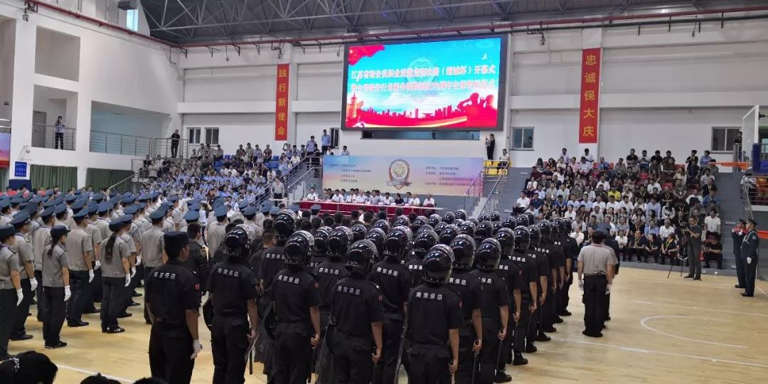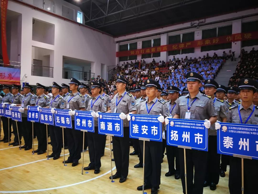 為更好的履行“保安勇?lián)?dāng),忠誠(chéng)保大慶”主題活動(dòng),有力推進(jìn)和提升全省保安服務(wù)行業(yè)的人才隊(duì)伍建設(shè)、綜合業(yè)務(wù)技能和履職能力,更好地服務(wù)新中國(guó)成立70周年大慶安保活動(dòng),9月16日下午3點(diǎn)30分,由省公安廳,省人社廳,省總工會(huì),共青團(tuán)江蘇省委主辦,江蘇省保安協(xié)會(huì)承辦的“江蘇省保安員職業(yè)技能競(jìng)賽決賽開(kāi)幕式暨全省保安行業(yè)服務(wù)保障國(guó)慶70周年安保誓師大會(huì)”在江蘇省司法警官高等職業(yè)學(xué)校(鎮(zhèn)江)舉行。全省13個(gè)地級(jí)市13支代表隊(duì)117名保安員參加了決賽。開(kāi)幕式由江蘇省保安協(xié)會(huì)會(huì)長(zhǎng)秦軍主持,公安部三局顧巖處長(zhǎng)、中保協(xié)第一副會(huì)長(zhǎng)劉紹武、江蘇省公安廳黨委副書(shū)記副廳長(zhǎng)尚建榮、省人社廳副廳長(zhǎng)朱從良、省總工會(huì)副主席井良強(qiáng)、團(tuán)省委副書(shū)記潘文卿、江蘇省監(jiān)獄管理局政治部主任袁誠(chéng)、鎮(zhèn)江市副市長(zhǎng)公安局長(zhǎng)陳金觀等領(lǐng)導(dǎo)出席開(kāi)幕式并講話(huà)。部分省、自治區(qū)、直轄市保安協(xié)會(huì)、公安機(jī)關(guān)分管領(lǐng)導(dǎo)和保安公司負(fù)責(zé)人參加安保誓師大會(huì)。淮安市公安局副局長(zhǎng)唐衛(wèi)東、治安支隊(duì)政委顏志龍、巡特警支隊(duì)支隊(duì)長(zhǎng)王彤、保安監(jiān)管大隊(duì)大隊(duì)長(zhǎng)呂述山、淮安市保安服務(wù)總公司總經(jīng)理趙愛(ài)忠等領(lǐng)導(dǎo)參加了開(kāi)幕儀式。開(kāi)幕式上,全體保安人員,進(jìn)行了“保安勇?lián)?dāng),忠誠(chéng)保大慶”集體宣誓。