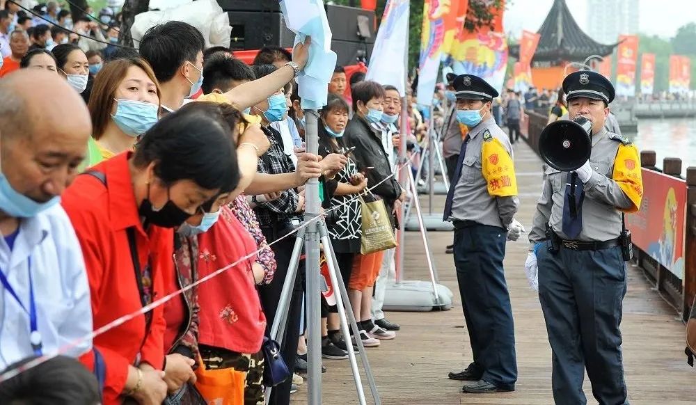 根據(jù)安保方案要求,總公司部署執(zhí)勤隊(duì)員們提前到崗到位,對所有重點(diǎn)防范區(qū)域進(jìn)行再排查,協(xié)助現(xiàn)場執(zhí)勤民警做好賽事河岸兩側(cè)河堤觀眾觀賞秩序的引導(dǎo)。賽道沿途四周共設(shè)3個(gè)出入口管控點(diǎn),共安排12樘安檢門以及6個(gè)體溫檢測監(jiān)控點(diǎn)。在出入口處,安檢隊(duì)員們親切的微笑,一次次“您好,請配合安檢!”,細(xì)致地排查著違禁物品,保安隊(duì)員們一遍遍“您好,請掃健康碼后按順序入場!”,禮貌耐心地維護(hù)好現(xiàn)場秩序。